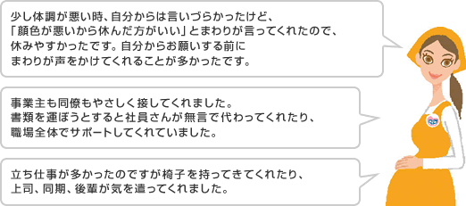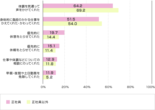 職場で受けた上司や同僚の配慮でありがたかったこと